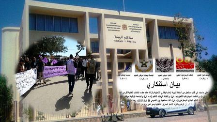 - · عزمنا اتخاذ كافة الأشكال النضالية المشروعة لرد الاعتبار لأساتذة الثانوية (اعتصام ووقفات أمام النيابة الإقليمية بالرحامنة).