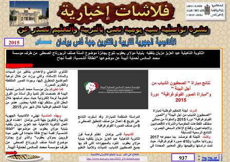 وبهذه المناسبة تهنىء الأكاديمية الجهوية للتربية والتكوين جهة فاس بولمان أعضاء فريق العمل للثانوية التأهيلية عبد العزيز مزيان بلفقيه بنيابة مولاي يعقوب عن موضوعها "الطاقة الشمسية: قصة نجاح طاقة متجددة في تغيير حياة قرويين بمولاي يعقوب" والذي توج بجائزة موضوع السنة صنف الربورتاج الصحفي من طرف مؤسسة محمد السادس لحماية البيئة.