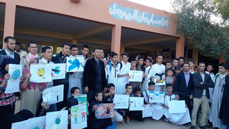 تحت شعار: "الثانوية التأهيلية... فضاء للتربية والتسامح وتكريس ثقافة حقوق الإنسان" وتخليدا لليوم العالمي للتسامح الذي يصادف 16 نونبر واليوم العالمي لحقوق الإنسان الذي يصادف 10 دجنبر من كل سنة نظم نادي التربية على المواطنة وحقوق الإنسان وقيم التسامح ومنتدى محمد الجزولي للثقافة والإبداع بتنسيق مع جمعية الآباء والأولياء بالثانوية التأهيلية محمد الجزولي أنزي نيابة تيزنيت مسابقة ثقافية في فن الرسم تنافس في حلبتها تسع عشرة تلميذة وتلميذا من بنات وأبناء المؤسسة بسلكيها، اتخذوا من موضوع"قيم التسامح وحقوق الإنسان" تيمة لأجمل لوحة فنية تجسد الشعار المذكور أعلاه؛ وقد افتتح هذا النشاط التربوي الذي أشرف عليه مدير المؤسسة ذ. محمد الهيبة اعبيبيش والذي جرى برحاب الثانوية على الساعة الثالثة بعد زوال يوم الجمعة 18 دجنبر 2015م بحضور جمع غفير من التلاميذ والتلميذات، بكلمتي كل من منسق نادي التربية على المواطنة وحقوق الإنسان وقيم التسامح ذ. عبد الرزاق أعويس ومنسق منتدى محمد الجزولي للثقافة والإبداع ذ. إبراهيم منتصر حيث أبرزا أهداف هذه المسابقة الثقافية وشروطها وضوابطها المنهجية ومراحلها الإجرائية وحيزها الزمني، كما ركزا على الدلالات الثقافية والحضارية المتصلة بهذا الشعار وضرورة انخراط المدرسة المغربية في حث الأجيال على تكريس ثقافته وتمثل مبادئه في حياتهم الاجتماعية فضلا عن انفتاحها بمثل هذه المبادرات الخلاقة على محيطها المجتمعي. وبعد ساعتين من التباري اتسمت بروح الإبداع والمسؤولية والمنافسة الشريفة استطاعت أنامل المتبارين أن توظف الريشة والألوان لإبداع عدد من اللوحات الفنية الجميلة ركزت على محاور مهمة تدعو في مجملها إلى قيم التسامح واحترام حقوق الإنسان كالحق في التعليم والحرية والكرامة والحوار والأخوة الإنسانية والانفتاح وقبول الآخر ومناهضة العنف والتعذيب والشغب وتشغيل الأطفال ومحاربة الهدر المدرسي والتطرف والإرهاب بجميع أشكاله؛ والجدير بالذكر أن هذه الأمسية الثقافية أطرها مجموعة من الأستاذات والأساتذة العاملين بالمؤسسة الذين شكلوا من بينهم لجنة علمية عكفت على دراسة نتائج المسابقة لاختيار اللوحات الثلاث الفائزة في انتظار أن تسلم لأصحابها جوائز قيمة.