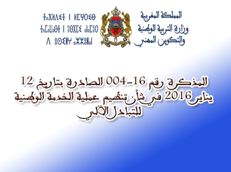 المذكرة رقم 16-004 الصادرة بتاريخ 12 يناير 2016 في شأن تنظيم عملية الخدمة الوطنية للتبادل الآلي