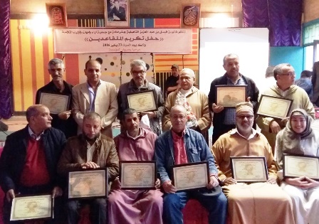 سيرا على نهجها الحميد وفي إطار تكريس ثقافة الاعتراف بالجميل وتثمين المجهودات، نظمت ثانوية فيصل بن عبد العزيز بنيابة وزارة التربية الوطنية والتكوين المهني بانزكان ايت ملول يوم السبت: 23 يناير 2016، حفلا بهيجا عرفانا وامتنانا لثلة من نساء ورجال التعليم الذين أحيلوا على التقاعد في السنوات الماضية، بحضور السيدات والسادة رئيس المجلس البلدي للدشيرة ورئيس مكتب الاتصال والعلاقات العامة وأطر المؤسسة الإدارية والتربوية والتقنية ورئيس وأعضاء جمعية أمهات وآباء وأولياء التلاميذ ورؤساء بعض المؤسسات التعليمية وأسر المحتفى بهم، وفي كلمة بالمناسبة رحب السيد مدير المؤسسة بالحاضرات والحاضرين وأشار إلى سمو اللحظة لتقدير المجهودات القيمة والمبادرات الخلاقة التي نحتها المكرمون في السجل التربوي لبلادنا، منوها بعطاءاتهم، ومشيدا بأعضاء اللجنة التنظيمية التي نظمت هذا الحفل، وبنفس الأحاسيس والحمولة الوجدانية تحدث الضيوف منوهين بالمكرمين ومعترفين بجميلهم ومثمنين الجهود التي كرسوها لبناء وتنمية مواقف القيم التربوية ومن بينهم السيدات والسادة: احمد العيضوس، فاطمة جيرار، مصطفى الراوي، محمد الزاوي، مصطفى بينار، عبد الله جبالي، ابراهيم امين، احمد فسوات، سعدية سيني، عبد الكريم الحوزي، حسن الادريسي.