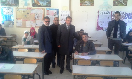 تفقد المكلف بتدبير مديرية فجيج صباح يوم الخميس 03 مارس 2016   مركزي الامتحان الجهوي لنيل شهادة السلك الاعدادي الخاص  بالمترشحين غير الممدرسن – الأحرار – ( الاسدوس الأول من السنة الدراسية 2015/2016 بمركز ثانوية تيفاريتي الإعدادية ، ومركز الإصلاحية ببوعرفة ، حيث وقف على سير وإجراء الامتحان بهاذين المركزين ، كما وقف على الحضور الوازن للإدارة التربوية ومعها    الأستاذات و الأساتذة المكلفين بالمراقبة، بالإضافة إلى الحضور المكثف للمترشحين .