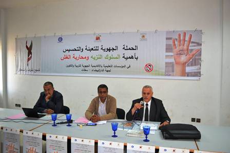 كما استعرض منسق مشروع "النزاهة وتخليق الفضاء المدرسي"، الملامح العامة للمخطط الإقليمي للتعبئة والتحسيس بأهمية السلوك النزيه ومحاربة الغش بالمؤسسات التعليمية، انطلاقا من "مخرجات" اللقاء التواصلي الجهوي المنعقد بالأكاديمية الجهوية للتربية والتكوين لجهة الدار البيضاء-سطات يوم الثلاثاء 26 أبريل 2016،مسلطا الضوء حول بعض الأمثلة من الدعامات التربوية المتوفرة، والتي يمكن استثمارها من أجل صياغة برامج هادفة في شكل أنشطة ثقافية وفنية متنوعة، مع السعي إلى حشد جهود جميع الفاعلين من الشركاء خدمة للحملة الإقليمية التي تعتبر بذرة أولية لتنزيل المشروع رقم 18.