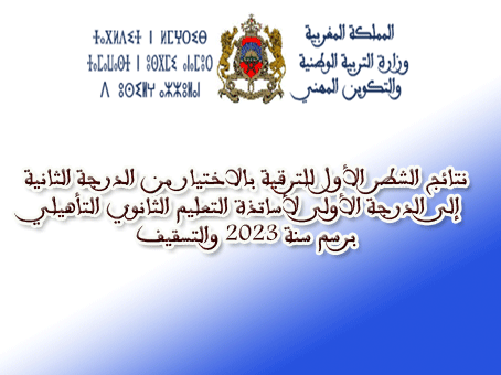 نتائج الشطر الأول للترقية بالاختيار من الدرجة الثانية إلى الدرجة الأولى لأساتذة التعليم الثانوي التأهيلي برسم سنة 2023 والتسقيف