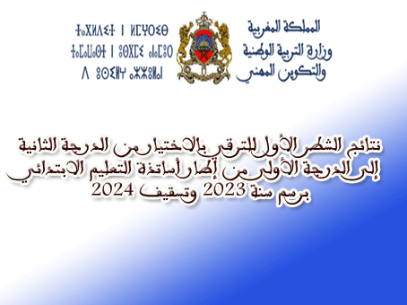 نتائج الشطر الأول للترقي بالاختيار من الدرجة الثانية إلى الدرجة الأولى من إطار أساتذة التعليم الابتدائي برسم سنة 2023 وتسقيف 2024