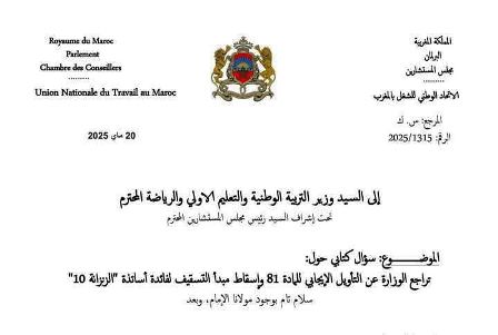 وجه المستشار البرلماني خالد السطي مراسلة إلى وزير التربية الوطنية والتعليم الأولي والرياضة تحت إشراف رئيس مجلس المستشارين، يطالب فيها بتوضيحات حول تراجع الوزارة عن التأويل الإيجابي للمادة 81، وإسقاط مبدأ التسقيف لفائدة أساتذة الزنزانة 10.