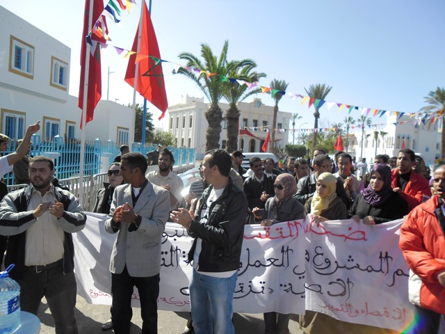صور من مسيرة نحو العمالة بعد منع المتضررين من الدخول إلى  بهو النيابة