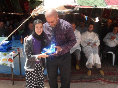وقد شهد الحفل حضور النائب الإقليمي لسيدي إفني الذي أشرف على مراسيم استقبال الجمعية من طرف المؤسسة،وكذا رؤساء جمعية الآباء وجمعيات المجتمع المدني وممثلي السلطة المحلية والأطر التربوية العاملة بالمؤسسة وكذا عدد من الساكنة. وقد استهل الحفل باستقبال الجمعية الأسبانية تم بعده تقديم وجة غذاء على شرف الوفد المرافق لها، لتنتضم بعد ذلك فقرات الحفل الذي دام الذي دام من الساعة الواحدة بعد الزوال إلى السابعة مساءوالتي شملت كلمات لمختلف الحاضرين:النائب الإقليمي،إدارة المؤسسة،رئيس الجمعية الإسبانية،رؤساء الجمعيات المحلية،وكذا أنشطة ترفيهية(أناشيد،مسرحيات،ألعاب،رقصات،مسابقات....)بالإضاقة إلى توزيع الجوائز على التلاميذ المتفوقين للإشارة فالجمعية المذكورة ستمكث بالمؤسسة لمدة شهرين ستعمل خلالها على تأهيل فضاء المدرسة وكذا تلقين دروس في تعليم اللغة الإسبانية للراغبين في ذلك بالإضافة إلى تقديم مساعدات تستهدف بالدرجة الأولى تلاميذ المؤسسة (أدوية،أدوات مدرسية،ملابس.....) حسب ما صرح به رئيس الجمعية خلال الحفل.