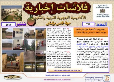 توضيح لأكاديمية الجهوية للتربية والتكوين جهة فاس بولمان ورد حول مقال منشور بجريدة الاتحاد الاشتراكي ليوم 16-9-13