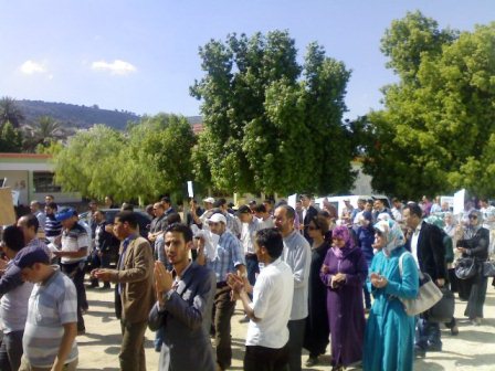 عرفت باحة نيابة وزان زوال يوم الثلاثاء الفاتح من أكتوبر 2013 توافدا ملحوظا لأعضاء المكاتب الإقليمية والمحلية للنقابات التعليمية (الجامعة الوطنية لموظفي التعليم untm- الجامعة الوطنية للتعليم fne – الفديرالية الديمقراطية للتعليم (fdt) حيث توافد على المكان أكثر من 130 أستاذا وأستاذة، رددوا شعارات تنديدية بما أسموه " السلوك السلطوي والتدبير المزاجي واللامسؤول" الذي تنهجه النيابة وكذا سياسة التهديد والوعيد التي تتعامل بها تجاه موظفي القطاع، مسجلين التراجع الخطير الذي طال مكتسبات نساء ورجال التعليم ....