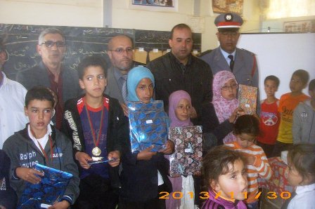 بمناسبة اليوم الوطني للتعاون المدرسي الذي تحتفل به جميع المؤسسات التعليمية الابتدائية العمومية على الصعيد الوطني والذي يصادف هذه السنة يوم السبت 30 نونبر 2013، احتضنت مركزية مجموعة مدارس ابن يونس التابعة لنيابة سيدي إفني، عدة أنشطة ثقافية وفنية ورياضية، تحت شعار " التعاونية المدرسية فضاء لترسيخ الحق والواجب"، فبعد الافتتاح بالنشيد الوطني وآيات من الذكر الحكيم ، استعرض منشط التعاونية البرنامج المسطر لهذا اليوم التعاوني، لينخرط بعد ذلك المتعاونون الصغار في حملة نظافة لساحة ومحيط المدرسة إضافة إلى أنشطة البستنة التي سهر عليها النادي البيئي بالمؤسسة، بعد ذلك انطلقت بالتوزاي مسابقة الرسم خاصة بالمتعاونات ومسابقة العدو الريفي خاصة بالمتعاونين الذكور، وفور الانتهاء من هاتين المسابقتين انطلقت المسابقة الثقافية التي تخللتها بدورها مسابقة للأمثال العربية و أناشيد وفقرات تنشيطية، وقد حضر فقرات من هذه الأنشطة النائب الإقليمي لوزارة التربية الوطنية والتكوين المهني بسيدي إفني ذ. إبراهيم المعدري ، رفقة قائد سرية الدرك الملكي بالاخصاص والقائد الإداري لقيادة سيدي احساين أوعلي إضافة إلى رئيس مصلحة الحياة المدرسية بالنيابة الإقليمية ورئيس المكتب الإقليمي لجمعية تنمية التعاون المدرسي ومستشارين جماعيين، إلى جانب آباء وأولياء تلاميذ المؤسسة وتلاميذ قدامى المدرسة، وألقى مدير المؤسسة كلمة ترحيبية بالضيوف ذكر فيها بشعار هذا النشاط التعاوني ، كما لم يفوت النائب الإقليمي الفرصة ليشيد بالمجهودات المبذولة من طرف الطاقم الإداري والتربوي والتلاميذ على حد سواء لتفعيل الأنشطة التعاونية بالمؤسسة، بدورها عبرت المتعاونة الصغيرة فاطمة الزهراء المودن، في كلمة باسم المتعاونين الصغار عن اعتزازها وافتخارها بأنشطة تعاونية مجموعة مدارس ابن يونس والتي حاولت أن تجسد الشعار الذي اختير لهذا اليوم على أرض الواقع. وتوج هذا اليوم الاحتفالي بتوزيع جواز تشجيعية رمزية على المتعاونين الصغار المتفوقين في المسابقات الفنية والرياضية والثقافية السلفة الذكر .