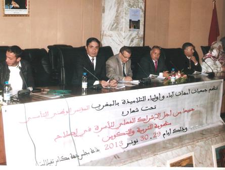 عقدت الفيدراليات الإقليمية لجمعيات آباء وأمهات وأولياء التلاميذ بالمغرب وممثليهم بالمجالس الإدارية للأكاديميات الجهوية للتربية والتكوين والجامعة الملكية للرياضة المدرسية مؤتمرها الوطني التأسيسي يومي 29 و 30 نونبر 2013 بمدينة مكناس ، تحت شعار :