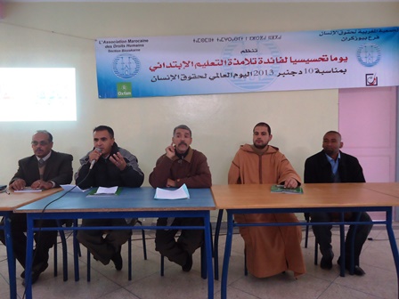 نظم فرع بويزكارن للجمعية المغربية لحقوق الإنسان بدار الشباب يوم الأحد 15 دجنبر 2013 فعاليات المشروع التربوي الحقوقي "مشتل" لفائدة 80 تلميذا وتلميذة ممن يتابعون دراستهم بالمؤسسات التعليمية الواقعة في النفوذ الترابي الحضري لمدينة بويزكارن بتنسيق مع النيابة الإقليمية لوزارة التربية الوطنية والتكوين المهني بكلميم حيث همت هذه العملية المؤسسات التعليمية: المدني الأخصاصي، حي المسيرة، علال بن عبد الله، الحسن الأول.