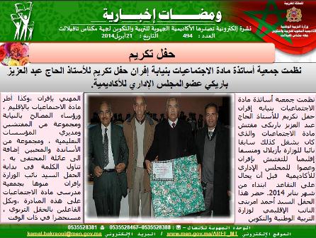العدد 494 من النشرة الإلكترونية ''ومضات إخبارية ''لأكاديمية مكناس تافيلالت‎