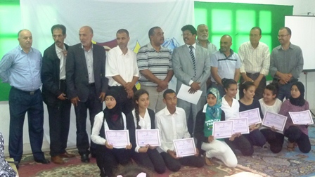 تتويجا لسنة حافلة بالمبادرات الرائدة في شتى المجالات من عمل اجتماعي ومشاركات في مهرجانات وطنية و إقليمية للمسرح والموسيقى ورحلات ترفيهية وعلمية تخللتها إبداعات التلاميذ في مختلف الأندية، نظمت ثانوية علال الفاسي حفلا عرضت فيه ملخصا لمجموع الأنشطة التي تم إنجازها خلال الموسم الحالي سواء التي نظمتها المؤسسة بامكانياتها المادية والبشرية او بتنسيق مع المجتمع المدني. ولقد كانت الفقرات متنوعة أعطت نظرة شاملة للحاضرين عن مهارات التلاميذ الإبداعية وقدرات المؤطرين على توجيهها توجيها ينحو في اتجاه خدمة مشروع المؤسسة، والأهداف المسطرة لها من طرف مجالس المؤسسة.ولقد حضر الحفل كل من السيد النائب الإقليمي لوزارة التربية الوطنية والسيد رئيس المجلس الإقليمي لعمالة انزكان ايت ملول والسادة نواب رئيس مجلس بلدية الدشيرة على راسهم السيد محمد اجعموم الذي ناب عن السيد رئيس المجلس البلدي ورئيس مكتب الاتصال بالنيابة والسيد الكاتب العام لفرع الاعمال الاجتماعية للتعليم بانزكان .ومجموعة من مفتشي التوجيه والاطر الادارية. و أعضاء جمعية الاباء على راسهم السيد عبدالله امهري المعروف بأنشطته الاجتماعية وبدعمه لكل المبادرات بالمؤسسة ورؤساء بعض الجمعيات .بالاضافة الى الاطر الادارية والتربوية للمؤسسة. ولقد عرف الحفل توزيع مجموعة من الشواهد التقديرية على التلاميذ ،حصلوا عليها أثناء مشاركتهم في أنشطة مجموعة من المؤسسات التعليمية :مؤسسة القلم ،الثانوية الاعدادية بن تومرت/ الثانوية الاعدادية احمد شوقي .جمعية محترف المسرح المتوازن بازرو.ومن ادارة مهرجان الفنون الشعبية المنظم باكادير. وخص السيد النائب الاقليمي أعضاء الفرقة المسرحية التي نالت احسن اخراج في المهرجان المنظم بمؤسسة القلم .والتي قدمت عرضها الناجح في مجموعة من التظاهرات. واعضاء النادي العلمي الذين نظموا معرضا علميا ناجحا شواهد تشجيعية دون ان ينسى اطر المؤسسة، حيث نوه بمجهوداتهم وسلم السيد المدير شهادة تقديرية نيابة عن كافة الاطر.كما كان حضور بعض اعضاء الجمعية الوطنية لمفتشي التعليم صدفة في اخر الحفل.اعربوا عن اعتزازهم بالمدرسة العمومية وعن الروح التربوية العالية التي سادت الحفل .