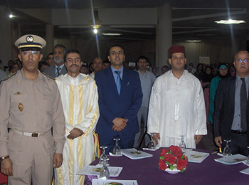 و قد استهل الحفل بآيات بينات من الذكر الحكيم تلاها التلميذ محمد يعلاوي تبرز إعجاز الله عز وجل في قوله " و من آياته....'' ، بعد ذلك وقف الجميع لأداء تحية العلم على كلمات النشيد الوطني الذي ادته المجموعة الصوتية لثانوية سيدي محمد بن عبد الله الإعدادية، و ألقى السيد عامل صاحب الجلالة على اقليم جرادة كلمة بين فيها دور المنظومة الجوهري في التنمية المحلية و الوطنية مؤكدا استعداده التام لدعم المشاريع المختلفة المتعلقة بالقطاع، و ألقى السيد النائب الإقليمي لوزارة التربية الوطنية و التكوين المهني كلمة رحب فيها بالحضور الكريم مبرزا ما حققته النيابة الإقليمية خلال الموسم الدراسي الحالي في مجالات العرض التربوي و العمل التربوي و الحكامة و مجالات الشراكة و التعاون معبرا عن اعتزازه الشديد بكافة المتدخلين لانخراطهم و التفافهم حول أوراش القطاع المتباينة انعكست في عدة محطات ابرزها اللقاءات التشاورية حول المدرسة المغربية.