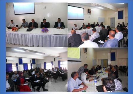 أشرف السيد النائب الاقليمي لوزارة التربية الوطنية والتكوين المهني بتيزنيت صباح يوم الخميس 16 اكتوبر 2014 ابتداء من الساعة العاشرة صباحا بالمركز الإقليمي للملتقيات والتكوينات، على انطلاقة أشغال اللقاء التاطيري المشترك المنظم من طرف الأكاديمية الجهوية للتربية والتكوين بجهة سوس ماسة درعة، بمشاركة فريق عمل جهوي مكون من السادة رئيس قسم تدبير الموارد البشرية والشؤون الادارية والمالية ورئيس مصلحة الميزانية والتجهيز والممتلكات ورئيس مصلحة الخريطة المدرسية والإعلام والتوجيه ورئيس مكتب الافتحاص الداخلي،إضافة إلى السيدة المكلفة بالدعم الاجتماعي وممثل عن مكتب الاتصال بالأكاديمية، فيما حضر من النيابة الاقليمية بتيزنيت، رئيس مصلحة الشؤون الإدارية والمالية واطر مختصة من مختلف المصالح النيابية المكلفة بمجالات الدعم الاجتماعي وبالتدبير المادي والمالي والصفقات والمحاسبة العامة والتحليلية وعدد من مسيّري المصالح المادية والمالية بالمؤسسات التعليمية (مقتصدين)، إضافة الى ممثلين عن اطر التفتيش التربوي والمالي والتوجيه ومنسق الدعم الاجتماعي على مستوى النيابة الإقليمية وممثل عن إحدى دور الطالب والطالبة بتيزنيت.