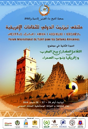 ستنظم جمعية الشيخ ماء العينين للتنمية والثقافة أيام 26/27/28 " ملتقى تيزنيت الدولي الثاني للثقافات الإفريقية " في دورته الثانية، عملا بمقتضيات دستور المملكة الذي يؤكد أن الانتماء الإفريقي يشكل أحد أعمدة الهوية الوطنية المغربية .