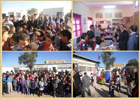 انسجاما مع قيم التعاون والتضامن التي تسود المجتمع المغربي، باعتبارها مقومات اساسية من مقومات الحضارة المغربية الاصيلة ودعامة من دعامات التنمية البشرية ، أشرف السيد عامل اقليم تيزنيت يوم الاثنين 22 دجنبر 2014 بمدرسة البساتين بحي دوتركا بمدينة تيزنيت على اعطاء انطلاقة عملية توزيع المساعدات التضامنية الموجهة لفائدة تلاميذ مدرسة البساتين بحي دوتركا وعددهم 302 تلميذ وتلميذة ، مقدمة لهم من تلامذة مدرسة خاصة تابعة للبعثة الفرنسية بالرباط في إطار حملة التضامن مع الاسر المتضررة من الفيضانات ودعم تلاميذ المؤسسات التعليمية.