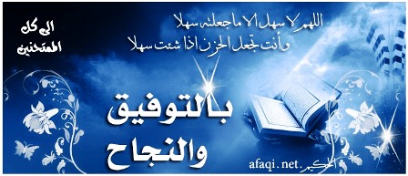 بمناسبة امتحانات الكفاءة المهنية دورة 27 شتنبر 2014، والخاصة بهيئة التدريس، نسأل الله العلي القدير أن يوفق المترشحين لاجتياز هذه المباراة في أحسن الظروف، وليكن التوفيق والنجاح حليفهم، إنه نعم المولى ونعم النصير....