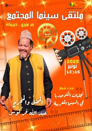 تنعقد فعاليات الدورة التاسعة لملتقى سينما المجتمع ببئر مزوي إقليم خريبكة، (دورة الممثل والمخرج عبد الله فركوس) أيام 13 و 14 و 15 نونبر 2025، تحت شعار “تجليات الكوميديا في السينما المغربية”.~وتعرف هذه الدورة، التي تنظم بمناسبة ذكرى عيد المسيرة الخضراء، وعيد الاستقلال المجيد، فقرا...