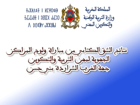 نتائج الشق الكتابي من مبارة ولوج المراكز الجهوية لمهن التربية والتكوين جهة الغرب الشراردة بني حسن مع البرمجة الزمنية لإجراء الشق الشفوي