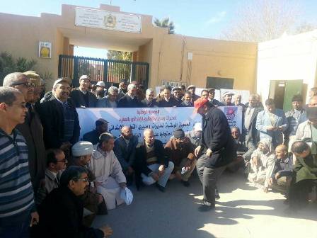 تنفيذا للبرنامج النضالي الذي سطّره المجلس الوطني للجمعية الوطنية لمديرات و مديري التعليم الابتدائي بالمغرب، نظم مديرو المؤسسات التعليمية بإقليم الرشيدية وقفة احتجاجية يومه الثلاثاء 29 دجنبر 2015 من الساعة 10 إلى الساعة 12 أمام مقر النيابة الإقليمية، احتجاجا على تملص الوزارة من فتح حوار جاد ومسؤول مع الجمعية، تحت شعار:لا إصلاح دون تسوية الوضعية النظامية لمدير المؤسسة التعليمية . وقفة ردّدوا خلالها شعارات مُنددة بالوضعية الراهنة لأطر الإدارة التربوية في ظل غياب تسوية الوضعية النظامية والمطالبة بتوفير الإمكانيات البشرية والمادية والتقنية للمؤسسات التعليمية..