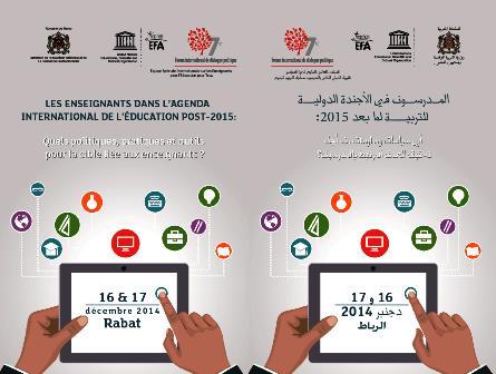 تنطلق بالرباط يومي 16 و17 دجنبر 2014 فعاليات المنتدى الدولي السابع حول الحوار السياسي في موضوع "المدرسون في البرنامج الدولي للتربية لما بعد 2015: أية سياسات وممارسات ووسائل لتحقيق الهدف المتعلق بالمدرسين"، الذي تنظمه وزارة التربية الوطنية والتكوين المهني ومنظمة اليونسكو والفريق الدولي الخاص بالمدرسين من أجل التربية للجميع.