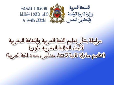 مراسلة بشأن تعليم اللغة العربية والثقافة المغربية لأبناء الجالية المغربية بأوربا (تنظيم مباراة ثانية لانتقاء مفتشين جدد للغة العربية)