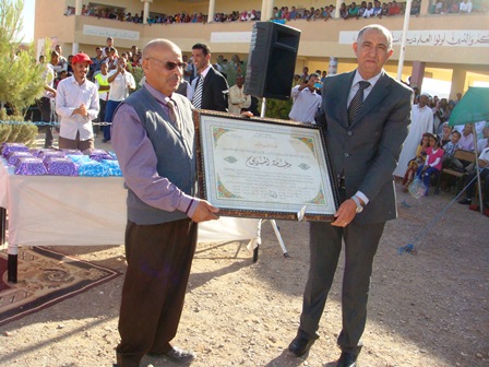 وفي الختام تم تسليم العديد من الهدايا للمحتفى به من طرف السيد عامل صاحب الجلالة على الاقليم و بعض الضيوف و أساتذة المؤسسة ، مع أخد صور تذكارية بالمناسبة .